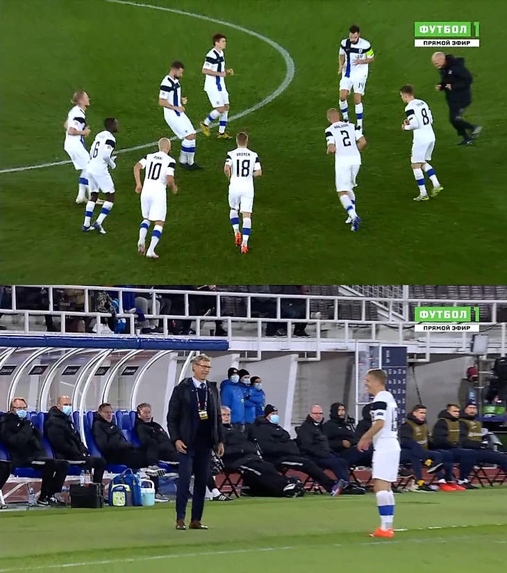 На второй тайм не вышел Сойри, который, пожалуй, не был заметен на протяжении первых 45 минут, хотя мы-то с вами увидели детали, что Пюрю пару раз был неплох. Но в целом фланг работал слабо, и вышел Нисканен, который с каждым матчем играет все лучше.