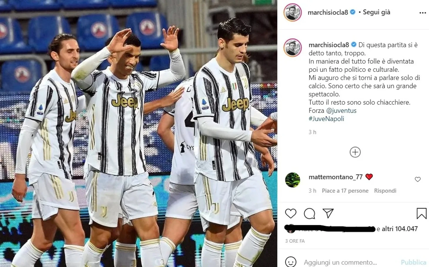 Клаудио Маркизио очень любит «Юве»! Он желал бьянконери удачи перед дерби с «Торино», а теперь заряжает команду на бой с «Наполи» в своем инстаграме, призывая говорить только о футболе.