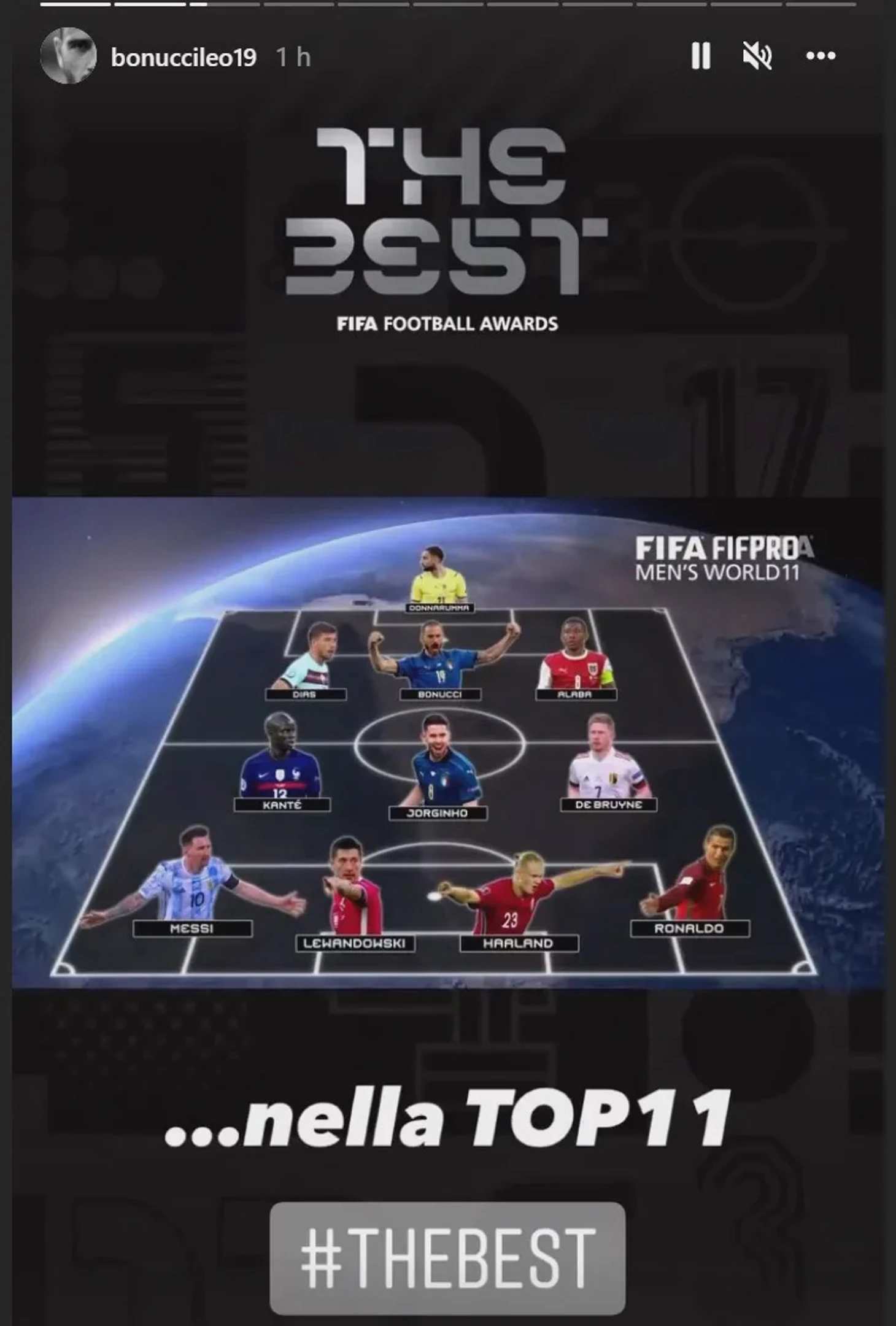 Бонуччи не забыл об этом, и после того как стало известно, что он попал в состав команды года от FIFPro, защитник опубликовал две сториз со следующим текстом: