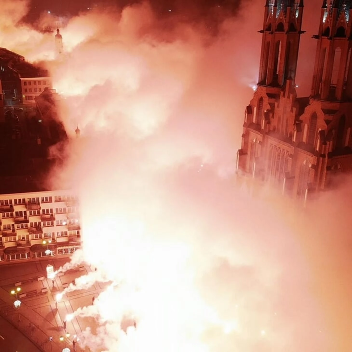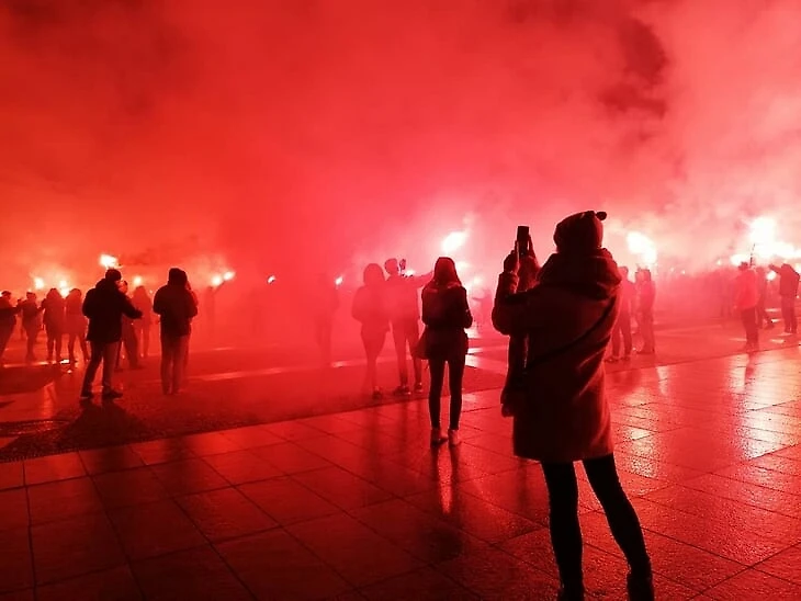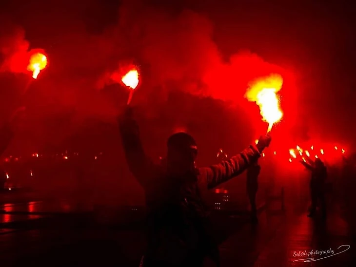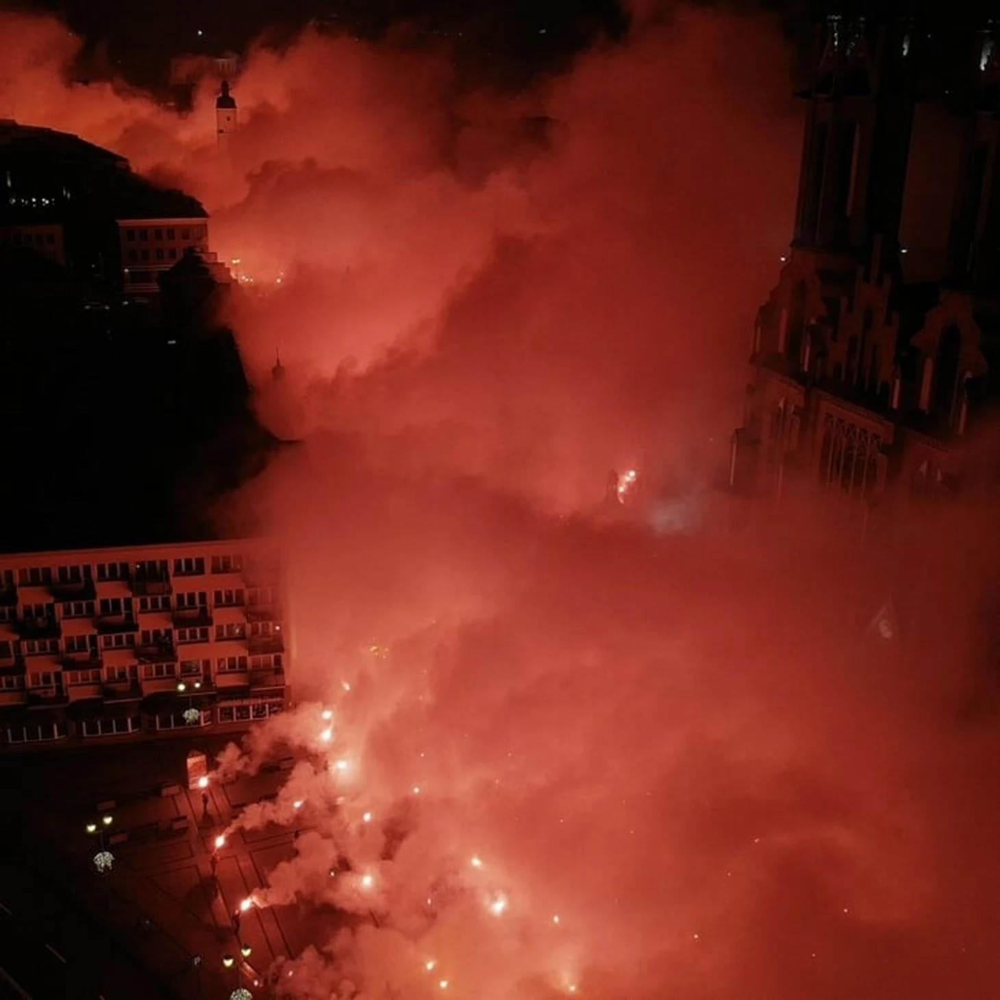Кажется, польский город горит целиком, но нет: это фанаты отмечают 100-летие клуба