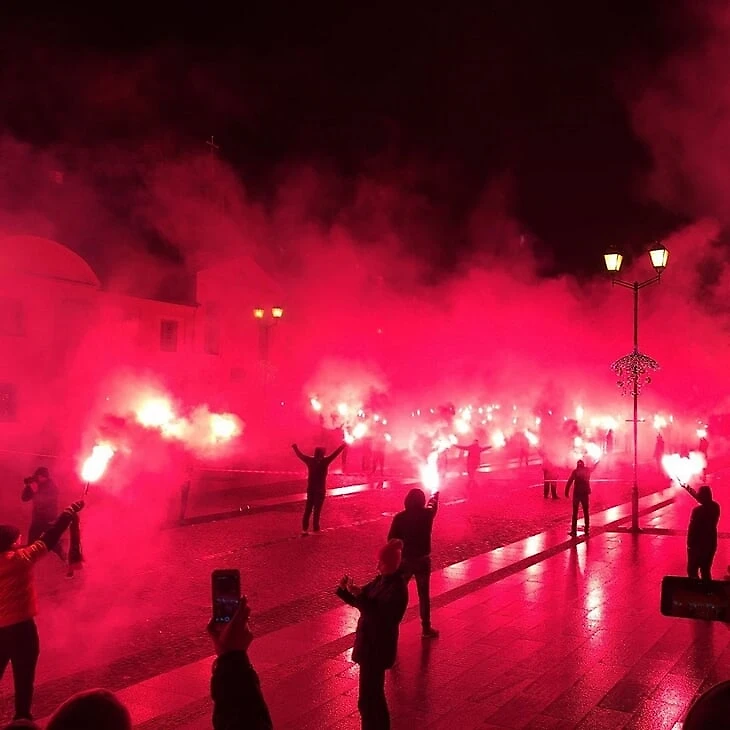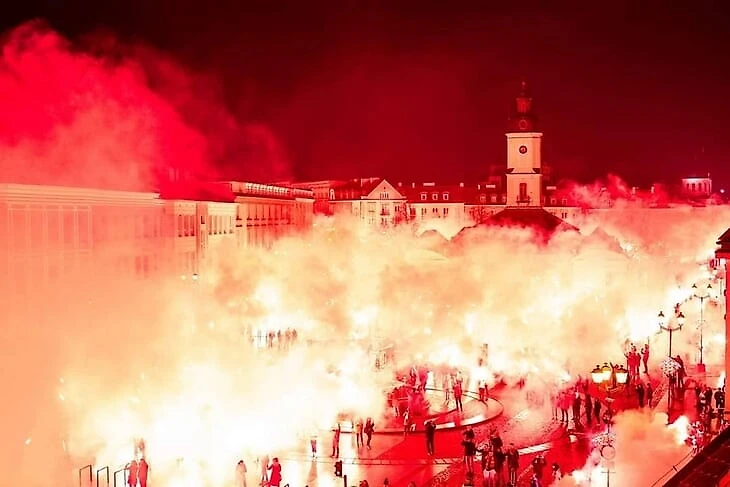 Возможно, в Европе еще никто не отмечал юбилей так, как польская «Ягеллония». Клубу исполнилось 100 лет, в Белостоке – сотни болельщиков c файерами. Ровно в 19:20 (отсылка к году основания) они зажгли целую волну возле городской ратуши и соседних улочках.