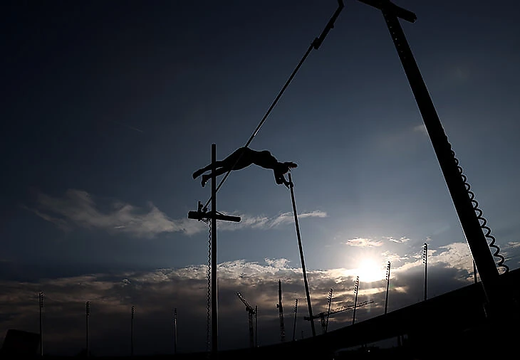 9 сентября. Олимпийская чемпионка-2016 Катерина Стефаниди преодолевает горизонталь в компании множества вертикалей.