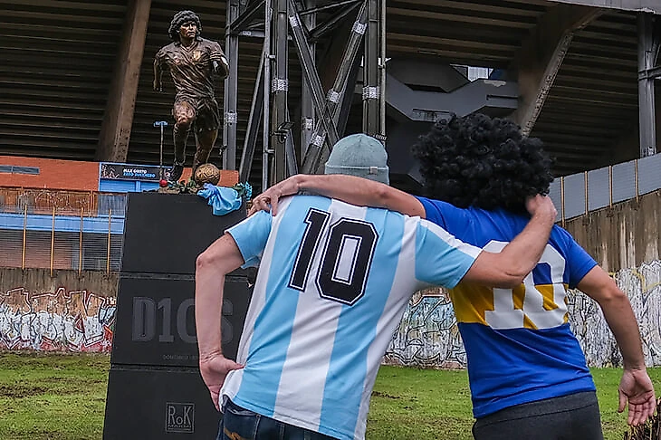 Этот памятник открыли городские власти, на открытие вместе с бывшими партнерами Диего по «Наполи» и президентом клуба Аурелио Де Лаурентисом приехали и несколько фанатов «Боки Хуниорс» из Аргентины!