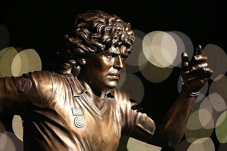 Памятник невероятно проработанный. Только посмотрите на лицо Диего Армандо – отчетливо видна работа над каждой морщинкой. Здесь нет того ужаса, что всплывает при виде того бюста Роналду с Мадейры.
