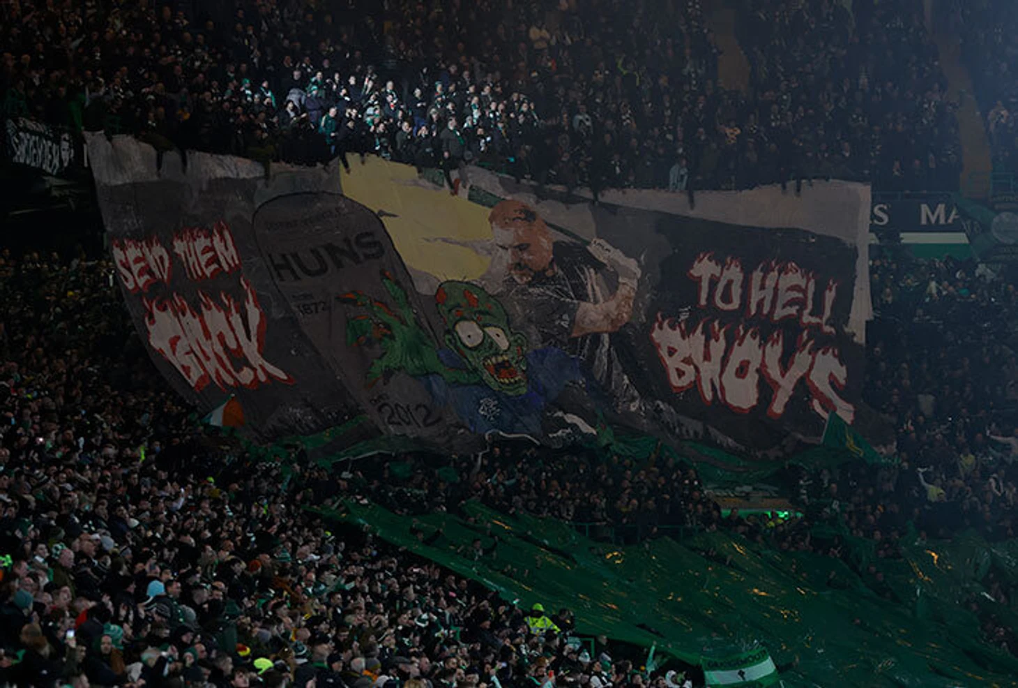 На трибунах был баннер, на котором тренер «Селтика» Анге Постекоглу замахивается битой на мертвяка в форме «Рейнджерс», выбирающегося из могилы. «Отправьте их назад в ад, парни». Явная отсылка к «смерти» «Рейнджерс» в начале 2010-х – тогда клуб из Глазго из-за финансовых проблем отправили в четвертый по счету дивизион Шотландии.