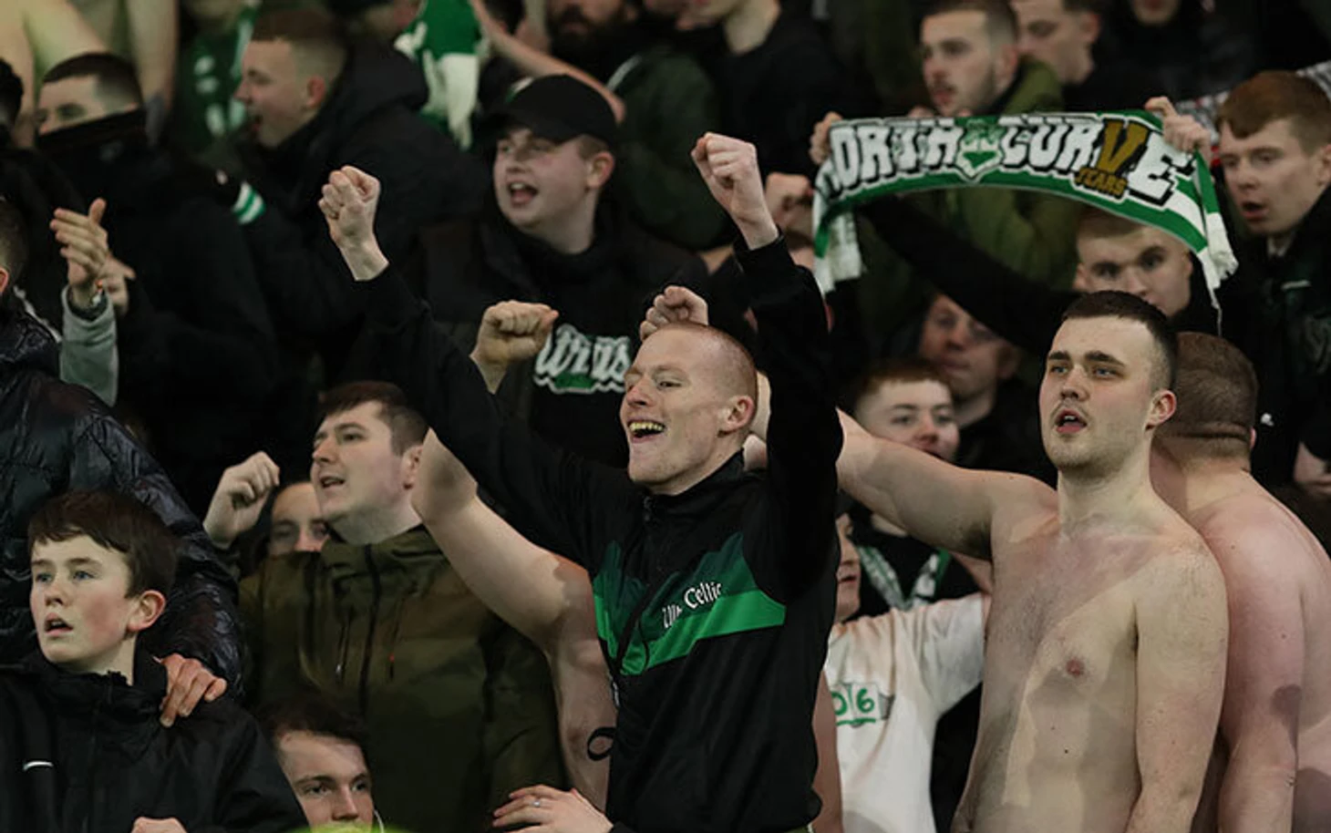 «Селтик» в случае победы бы выходил на первое место. По такому случаю болельщики подготовили целое шоу. По-шотландски красочное и в зеленых цветах клуба!