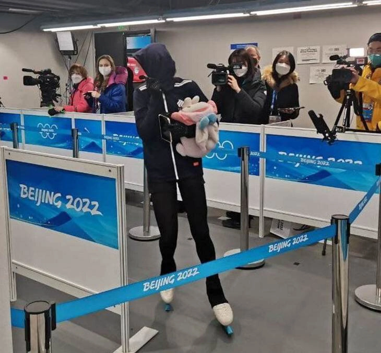 Камила Валиева в Пекине – и продолжает тренировки. Даже по фотографиям из Capital Indoor Stadium заметно, как ей психологически тяжело. Но еще тяжелее вне льда. После занятий фигуристка прошла мимо журналистов, в том числе и иностранных. Риат Аль-Саммараи из The Daily Mail кричал ей вслед: «Ты чистая?». И делился достижением в твиттере.