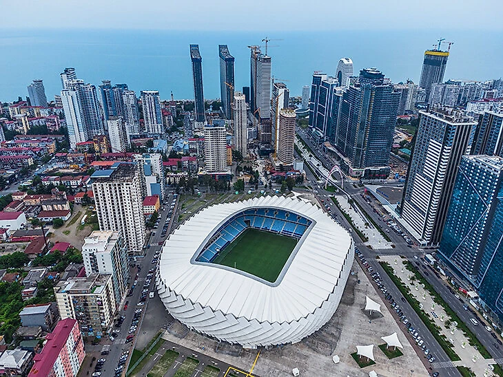 Батуми. Стадион полностью окружен небоскребами и стройками.