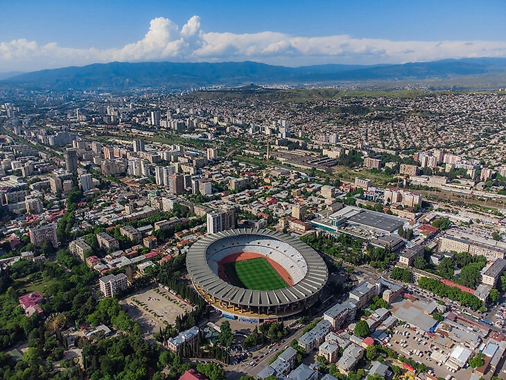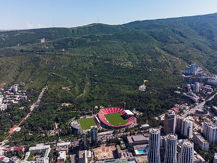 Тбилиси. Чисто футбольный стадион «Локомотив». В прошлом году тут выступали Imagine Dragons, арена принимала матчи молодежного Евро.