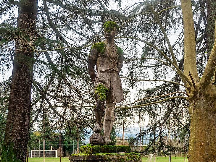 Стадион «Урожай». Уникальное место в глубинке регион Имеретия. Стадион построен в 1939-м и до сих пор эксплуатируется. Сохранились уникальная входная группа и монумент футболисту.