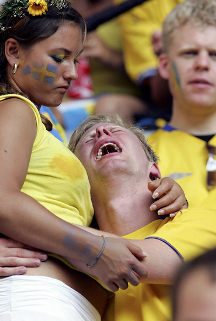 Шведские болельщики переживают поражение от Германии в 1/8 финала ЧМ-2006.