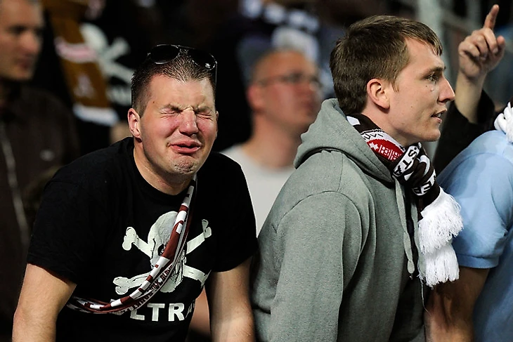 Реакция немецких болельщиков после полуфинального матча Евро-2012, в котором Германия проиграла Италии – 1:2.