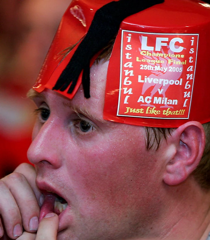 Болельщик «Ливерпуля» наблюдает легендарный финал Лиги чемпионов, в котором его команда проигрывала «Милану» 0:3.