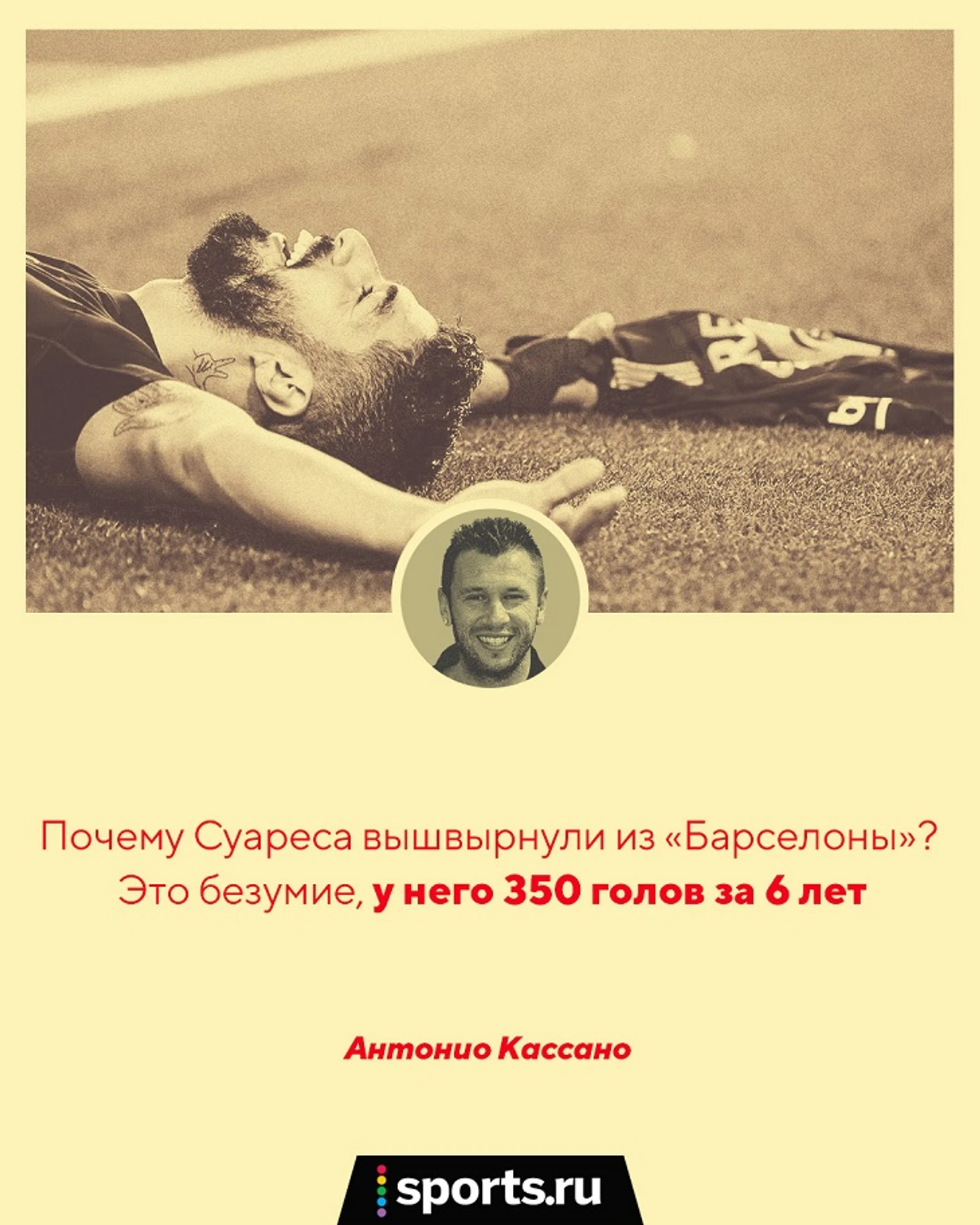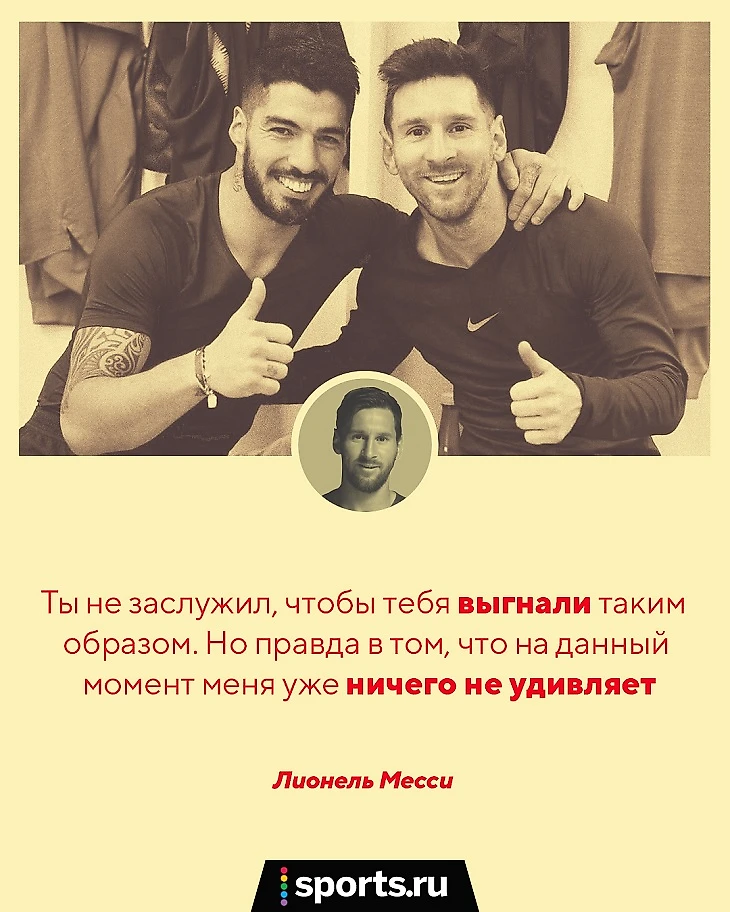 Суарес плакал на последней пресс-конференции в «Барсе». Плакал и уезжая с базы «Барсы», а позже рассказывал, что следит за успехами бывшей команды и грустит, когда у друзей дела идут плохо – ему явно не плевать на этот клуб.