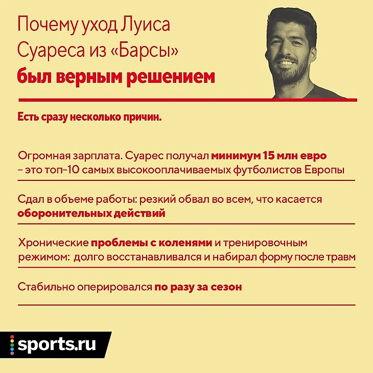 Странно видеть такое отношение к человеку, который за 6 лет в «Барселоне» забил 198 голов в 283 играх – Суарес третий бомбардир в истории клуба – и отдал 109 ассистов. В прошлом сезоне Луис оформил 21+12 в 36 матчах.