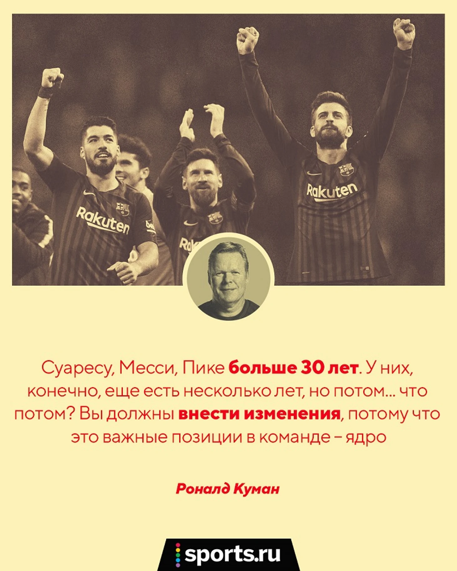 Переносимся в август прошлого года: новый тренер «Барсы» Роналд Куман начал чистку: разгружал зарплатную ведомость, сливая ветеранов.