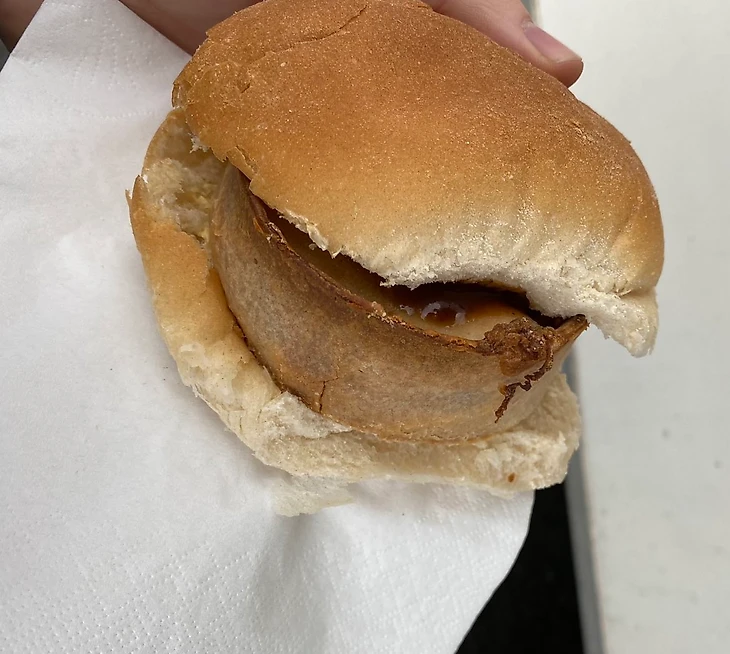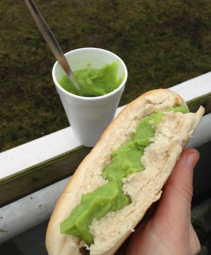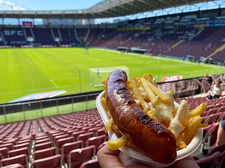 А вот седьмой див и вкуснота от валлийского «Мертир Таун». Да, это картошка и сосиски в батоне.