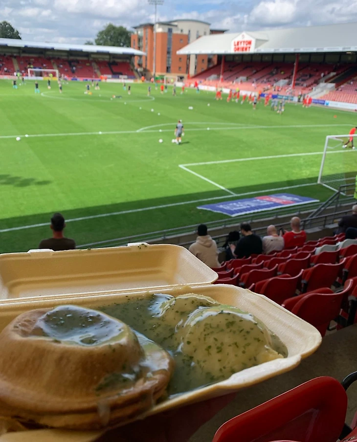 Поднимаемся чуть выше – Вторая лига Англии (это уже профи) и «Лейтон Ориент». Пирог и пюре под какой-то подливой.