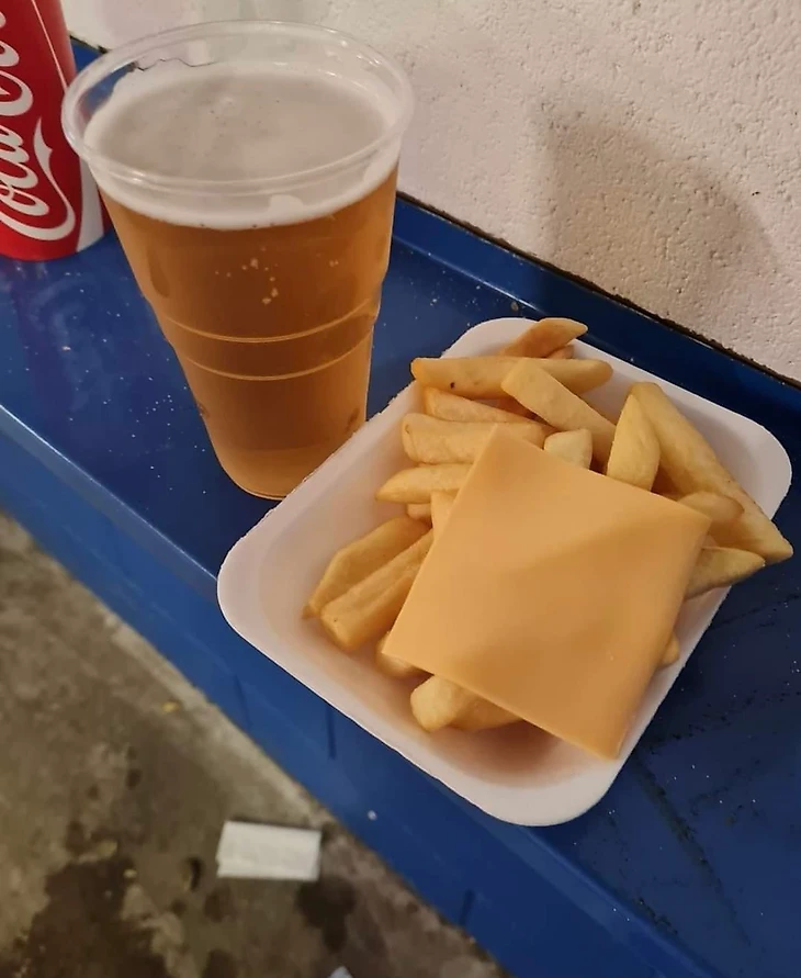 За 4 фунта на стадионе «Бирмингема» можно купить вот этот набор: картошка, на которую положил кусок сыра, и пиво.