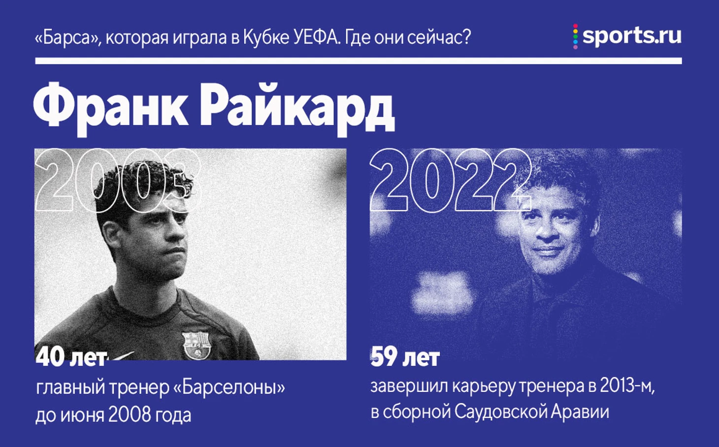 Видимо, такие моменты заставили Франка рано закончить с футболом: отработав в Саудовской Аравии, в 2013-м 51-летний Райкард завершил карьеру. А где сейчас остальные герои той «Барселоны»?