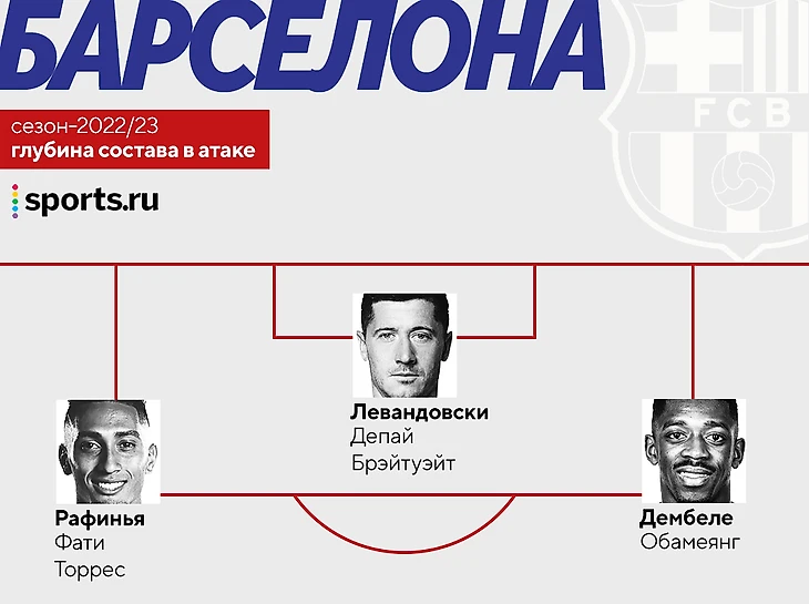 Лето-2022 с точки зрения усиления атаки выглядит солиднее всего: купили Левандовского и Рафинью, переподписали Дембеле, которого просил оставить Хави. Именно эта троица выходила в старте в последних товарищеских матчах.