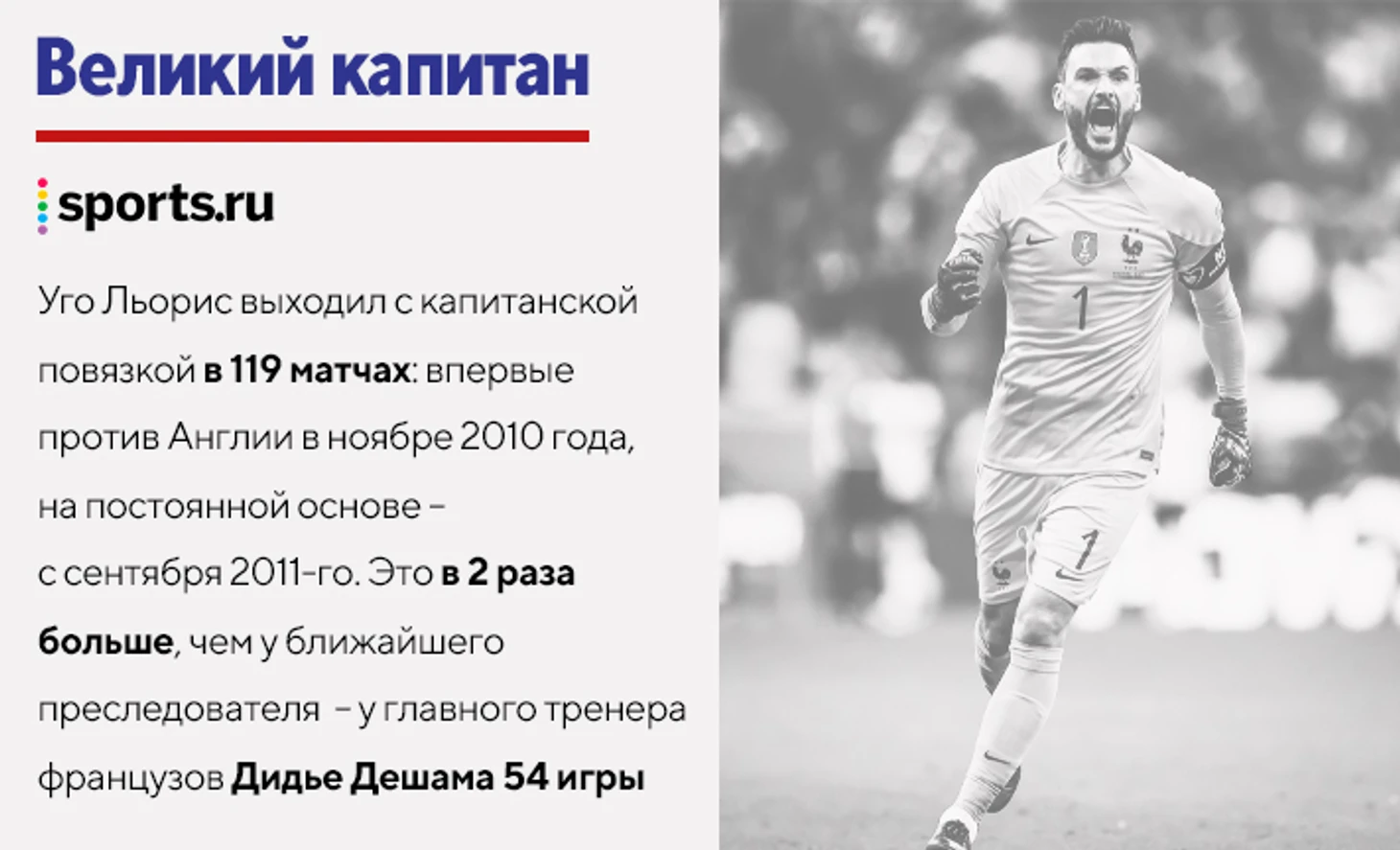 Льорис – великий капитан Франции. Он играет с повязкой уже больше 10 лет и дольше Буффона с Касильясом