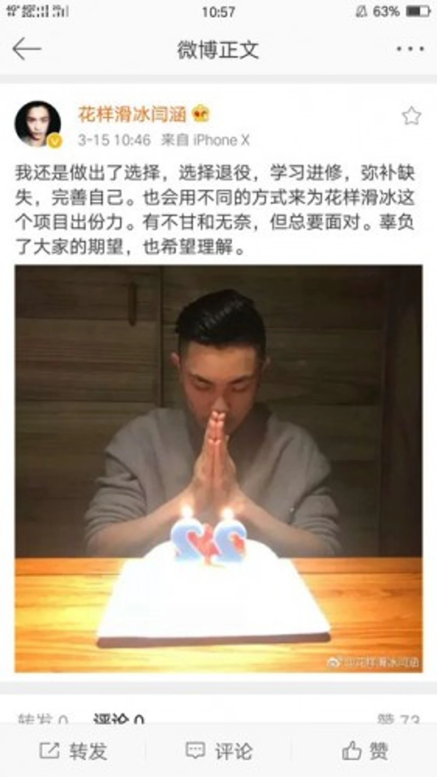 Хань Янь, фигурист, представляющий Китай, объявил 15 марта на своем Вейбо (кит. гибрид ФБ и твиттера), что покидает ФК.