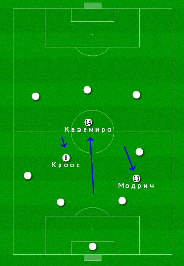 Дело в том, что с Эдегором при билд-апе у «Реала» куда меньше перестроений: с Каземиро в опорной зоне Кроосу и Модричу приходится опускаться из своих изначально более высоких позиций, а самому бразильцу – подниматься выше. С Эдегором же такое расположение задумано изначально.