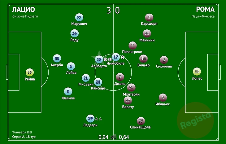«Рома» же в отрезки, когда она получала не только мяч, но и территорию, в атаке чрезмерно сваливалась на навесы (из 22 прошли только два), при этом теряла баланс в обороне. Очень в этом смысле показательно время замены Манчини на Майораля и перехода на более смелый вариант на четвёрку защитников: только 71-я минута. Фонсека решил окончательно рискнуть только в ситуации, когда интриги уже не осталось – настолько он котирует связку Альберто - Иммобиле и атакующую структуру «Лацио» в глобальном смысле.