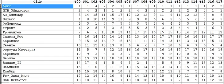 Сдали Спарта(8->16)и Фортуна(11->17)и Зволле(13->18) и находятся в зоне вылета.