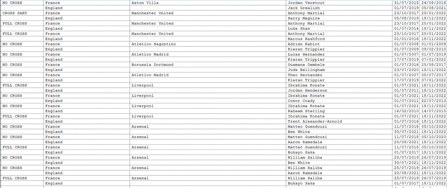 Вашему вниманию предоставляется информация 1.игроки выступали в прошлом за клуб-соперник. 2.Соперники играли за один и тот же клуб (возможно в разное время- NO CROSS)