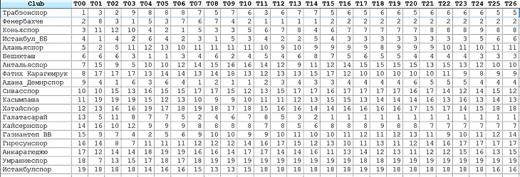 Дебютанты – Истанбулспор (19->16), Умраспор (18->19), Анкарагюджю (17->15).