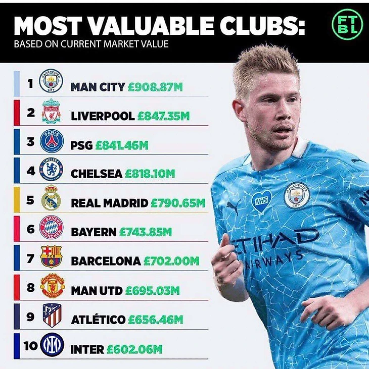 Цена, указанная в рейтинге, это стоимость состава с учетом рыночной стоимости игроков на Transfermarkt. Полностью рейтинг выглядит следующим образом.