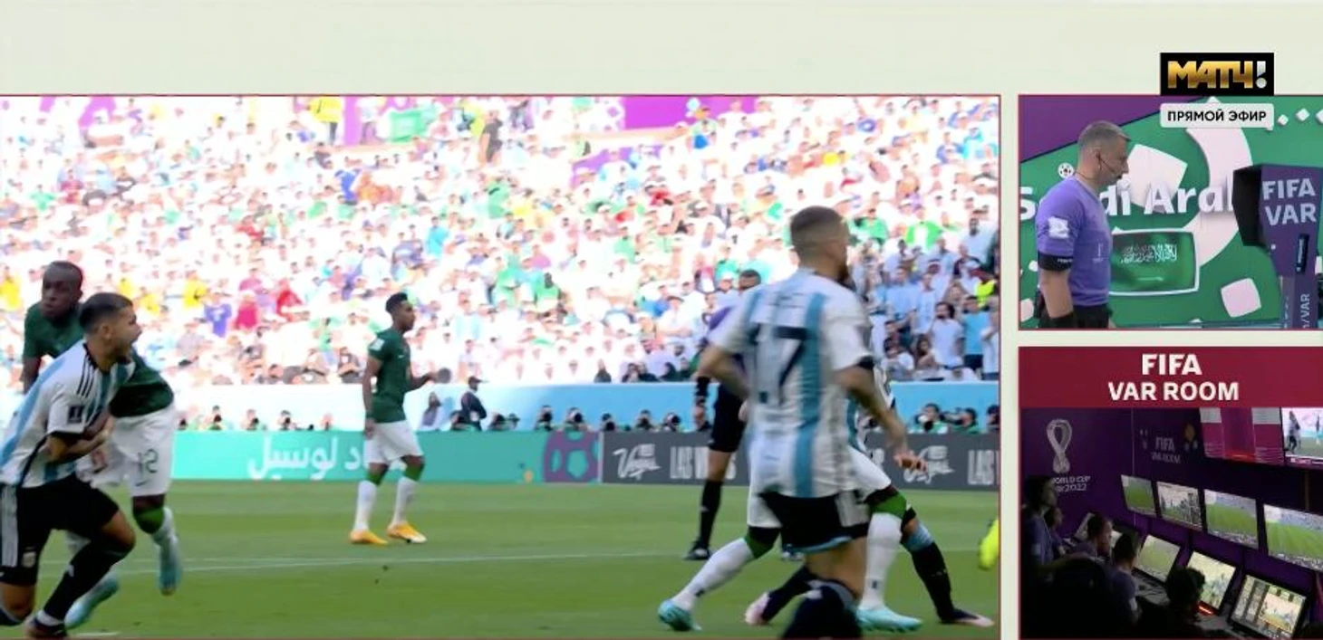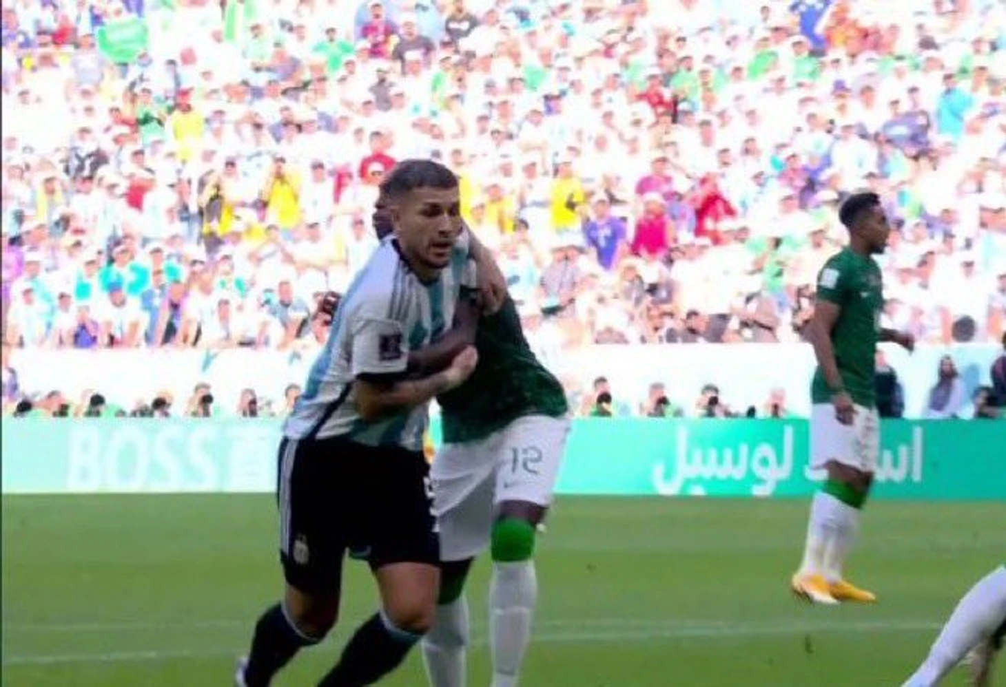 На 9-й минуте матча Аргентина – Саудовская Аравия игрок саудитов схватил Леандро Паредеса одной рукой в штрафной площади, рефери пересмотрел эпизод с помощью VAR и указал на точку.