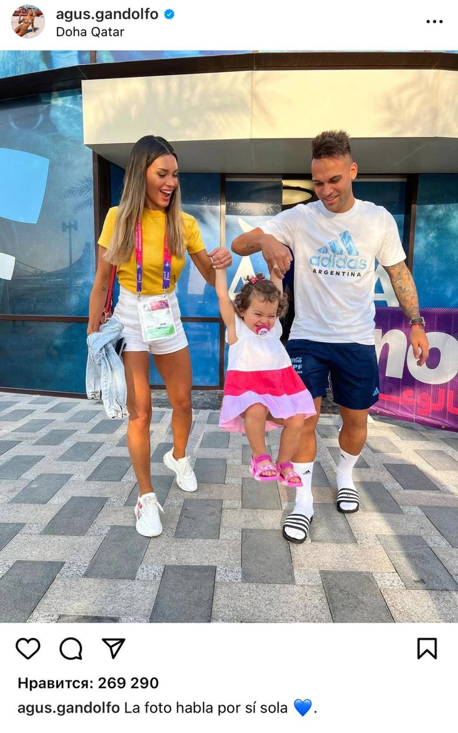 Критику мужа не оставила внимания Агустина Гондолфо. Супруга Лаутаро – известная аргентинская модель, вскоре после окончания матча она выложила в сторис Инстаграма ответ критикам, напомнив, что при Лионеле Скалони только Месси забил за Аргентину больше голов, чем ее муж – 28 против 21.