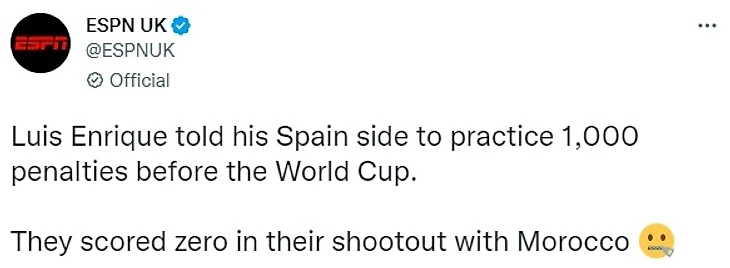 Любопытно, что Луис Энрике потребовал от своей сборной отработать 1000 пенальти перед турниром… в итоге испанцы не смогли реализовать ни одного 11-метрового удара в ворота Марокко.