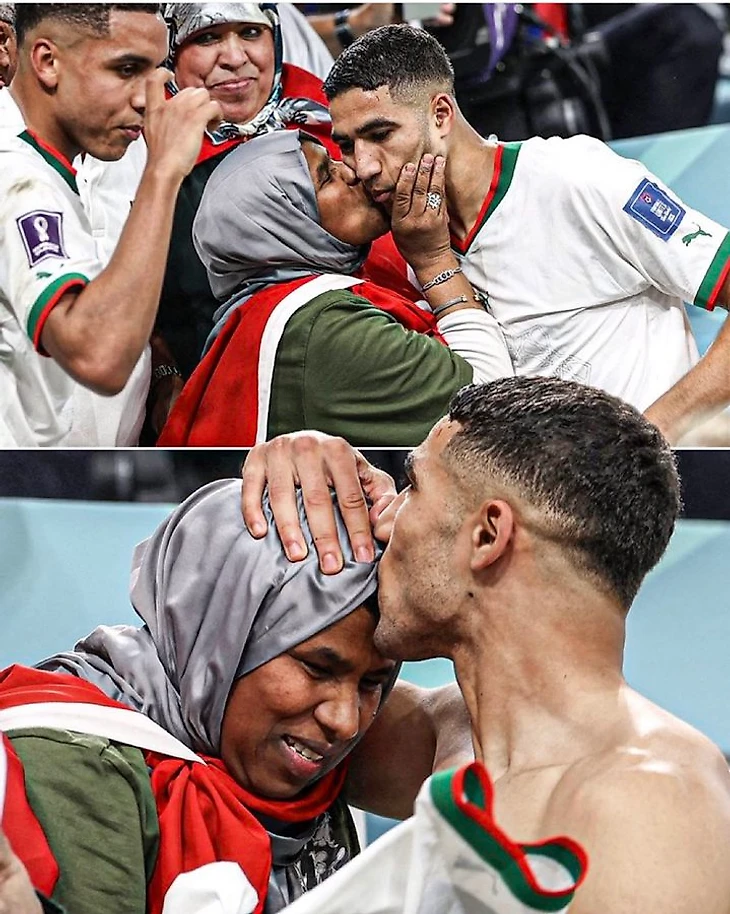Точно так же Ашраф поступил после решающего матча в группе против Бельгии (2:0). Тогда он поцеловал маму и подарил ей футболку.