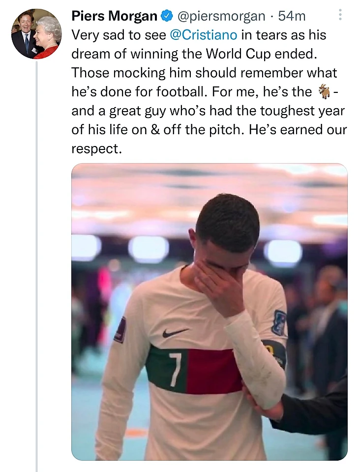 Морган, которого давно уличили в симпатии к Криштиану, получил массу критики и насмешек от своих читателей.