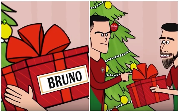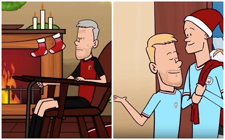 Переодевшийся де Брюйне, отжимающий подарки Криштиану и сверхточный Нуньес – забавный новогодний мультфильм с множеством отсылок