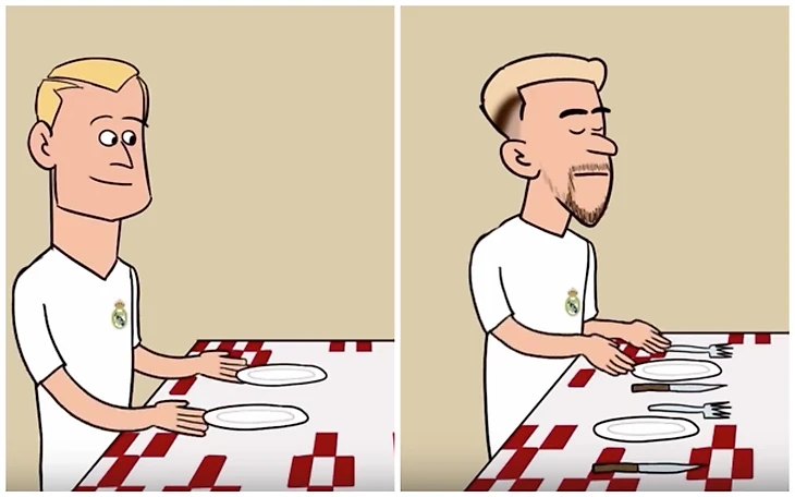 3. Модрич накрыл стол футболкой сборной Хорватии, Тони Кроос принес посуду, а Феде Вальверде подготовил приборы – явный намек на то, что всю игру «Мадрида» ведет тройка полузащиты.