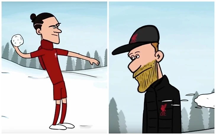 4. Дарвин Нуньес бросает несколько снежков в Юргена Клоппа, но ни разу не попадает – грустный немец опустил голову и даже не пытается уворачиваться.