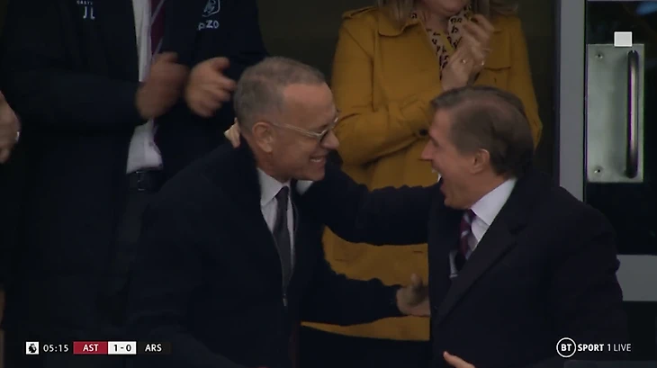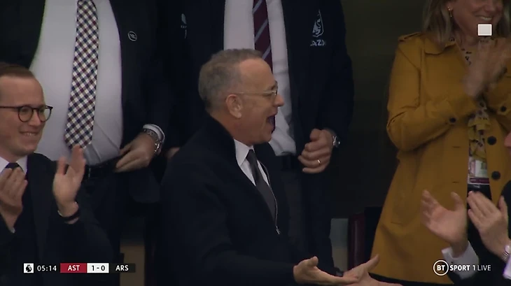 Форвард «Астон Виллы» Олли Уоткинс открыл счет в матче против лидера АПЛ «Арсенала» уже на пятой минуте. Оператор и режиссер трансляции отработали мастерски: они заметили на трибунах голливудского актера Тома Хэнкса и сняли его неповторимую реакцию.