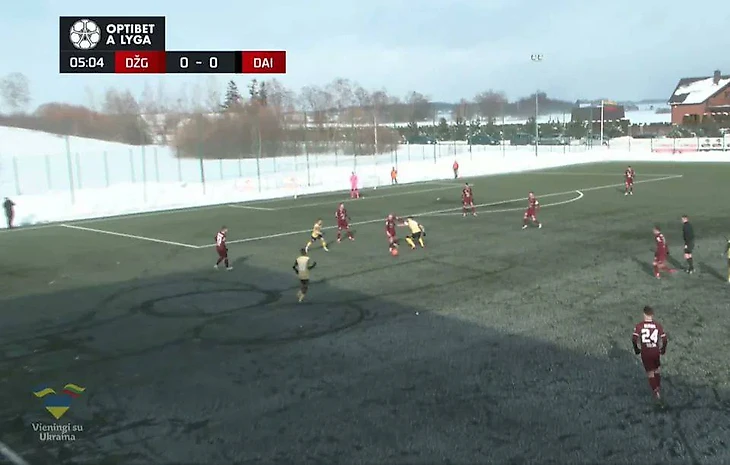 Перед матчем «Джюгаса» и «Дайнавы» на поле выпал небольшой слой снега.