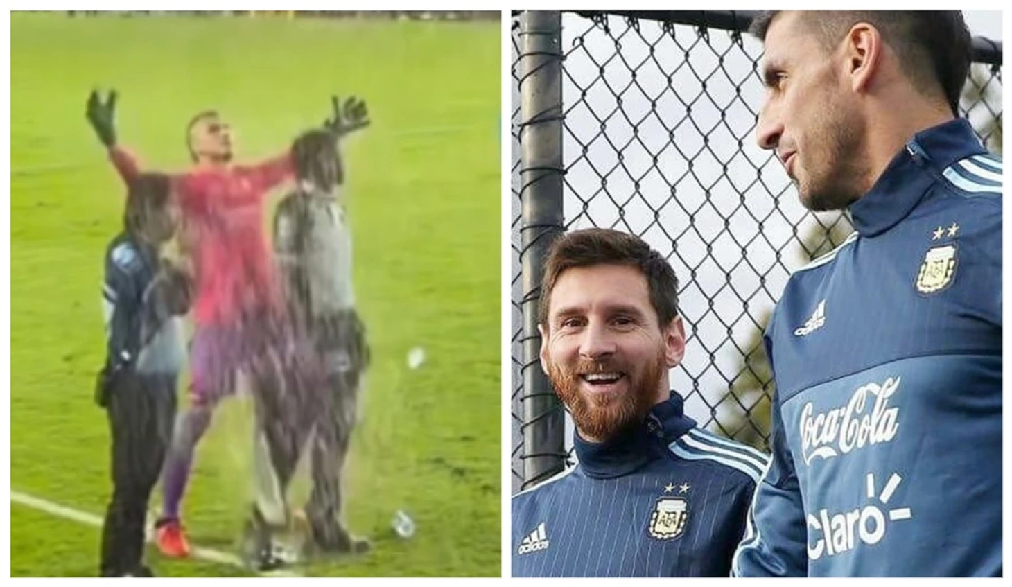 В какой-то момент болельщики американской команды начали бросать в сторону вратаря «Тигреса» Науэль Гусмана бутылки и обливать его водой. Кипера защищали охранники стадиона, а затем произошло это.