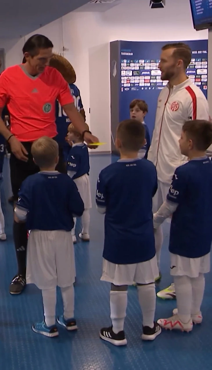 Дениз Айтекин дал детям подержать желтую карточку перед матчем Бундеслиги. Мальчишки дерзко примерили на себя роль арбитра
