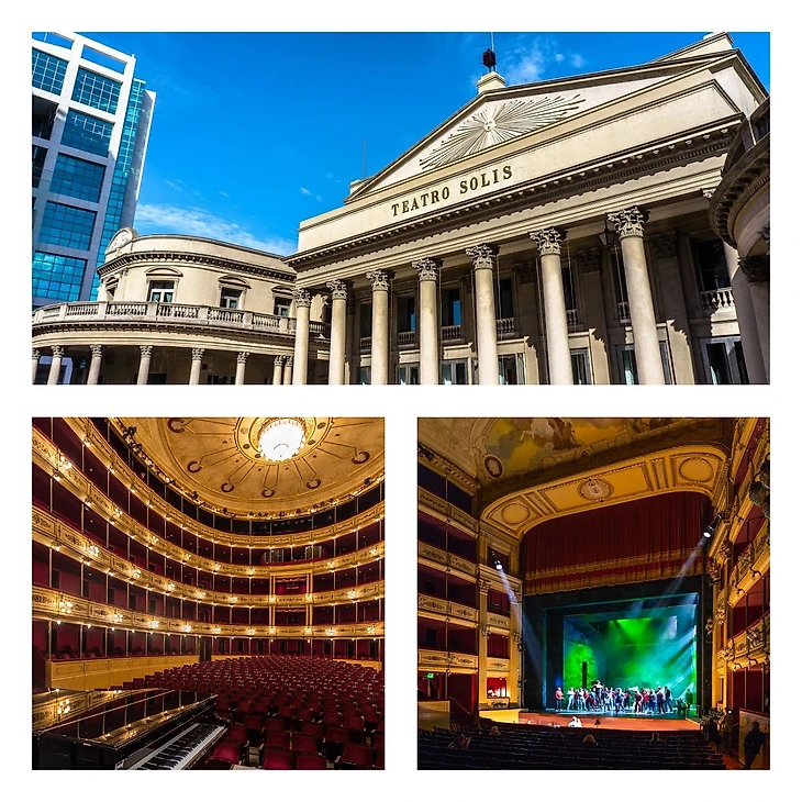 Это старейший театр не только в Уругвае, но и во всем Западном полушарии, открыт он в 1856 году. Театр должен был стать культурным центром, олицетворяющим дух зарождающегося уругвайского общества, символом стремления к гармонии и процветанию. Спроектирован он итальянским архитектором Карло Зукки, поэтому концертный зал напоминает зал театра Ла Скала в Милане, а интерьер – театра города Прадо, что недалеко от Флоренции. Назван в честь Хуана Диаса де Солиса, испанского мореплавателя, одним из первых высадившегося на месте современного Уругвая.