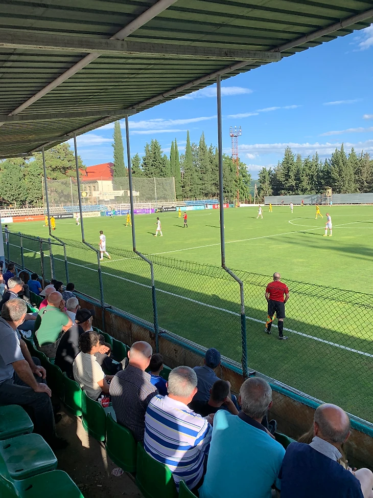 Дают контакты приюта в Тбилиси. Мчимся туда. Щенок после уколов засыпает, но постанывает во сне. Ты едешь по живописной дороге в другой стране, из колонок играет приятная музыка, а на заднем сидении на грани жизни и смерти находится коричневый комок, найденный на лестнице полузаброшенного дома. Странные чувства. Спустя 5 часов добираемся в Тбилиси. Парень ещё жив. Звоним в приют, но не все так просто. Врачи в клинике Кутаиси оказались, видимо, не самой высокой квалификации, и не взяли нужные анализы. Без которых в приют животного не возьмут. Снова гугл. Время 18:45. Большинство клиник Тбилиси до 19. Находим одну до 20, едем. Высаживаю ребят, сам ищу место парковки в жилом массиве. Запарковавшись получаю сообщение «быстро иди сюда». Понимаю что «там» ничего хорошего меня не ждёт. Маленький коричневый пацанчик, подобранный 7 часов назад, вдруг стал невообразимо дорог. В голове рисовались картинки, как он вылечится и я привезу его домой. Он вырастет не очень большим и будет где-то по колено. Я придумаю ему прикольное имя, связанное с Грузией. Он будет очень верным и любящим псом, а у меня будет красивая история о его спасении и маленький повод для гордости за собственное «я». Но ничего этого не будет. Переступаю порог клиники, вижу мрачные лица друзей и врачей. «До утра ему не дожить. Кровь практически белая. Состояние ужасное. Мы можем попробовать медикаментозно протянуть его до утра, но вам нужно найти собаку-донора крови. При этом шансы, что щенок выживет, все равно минимальны». Особо не думаю и отвечаю «давайте попробуем». В шоковом и грустном состоянии выходим из клиники. Защитная реакция находится в соседней двери магазина «норс фейс», где покупаю себе футболку «Тбилиси». От тоски это не спасает. Я понимаю, что щенок скорее всего не выживет, и утром я получу на вотсап сообщение о его кончине. Это грустно. Тем не менее, собака-донор найдена, спасибо панк-комьюнити, которое всегда готово прийти на помощь. Утром с ужасом открываю вотсап - пусто. Может есть шанс? Хозяйка с собакой-донором уже в пути, я уже готов выходить, но раздаётся звонок с незнакомого номера и я все понимаю. «К сожалению Пупсик умер». Они назвали его Пупсиком. Таковы правила: у каждого животного, поступающего в клинику, должно быть имя. Пупсик отправился на радугу, а мы отправились в чувство глубокой прострации. С одной стороны, сделали все что могли, а с другой - очень хотелось верить в чудо и красивую историю спасения. Но не в этот раз. С таким настроением и прошёл день. Ранее составленные планы посещения футбола я отменять тем не менее не стал. Город Болниси, 65 километров от Тбилиси «вниз», по не туристическому пути. Матч в 18:00, выезжаю в 17:15. За окном проносится тбилисская субурбия, города-спутники, села. И вот, наконец, Болниси, въезд в который украшает источник минеральной воды. Набираю и тут же пробую. Вода прекрасная. Природная газация и отличный вкус. Въезжаем в город, навигатор ведёт к стадиону, но приводит в дебри частного сектора. Впрочем, найти стадион не составляет труда: слышен характерный гул и возвышаются мачты освещения. После тотального солд-аута в Батуми были небольшие опасения по поводу билетов. Но все хорошо: вход свободный. Первый шаг за высокий забор, я уже кайфую: маленький старый стадиончик, вид на гору, на которой возвышается церковь, трибуны максимально близко к пол