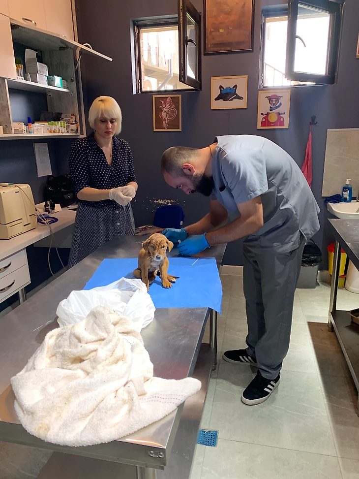 Точнее, возможность такая есть, но кто в это верит? И вот тут, в 2022 году, в ужасных условиях живут люди. Конечно, в таких местах хочется остаться подольше, словить атмосферы, возможно пообщаться с местным жителем, но время поджимало. Выходя из дома на парадной лестнице замечаю маленький коричневый комочек, головой провалившийся в лестничную дырку и обильно окруженный мухами. Это милого вида щенок. Еле живой. Еле стоящий на лапах. Его тело атакуют блохи и мухи, его глаза полны печали и тоски. Не будучи специалистом, было понятно, что бедолаге осталось недолго, но оставить его умирать на этой лестнице не позволила совесть или чувство сострадания. Беглый гугл - и мы уже мчимся в клинику в Кутаиси. Там у малыша берут анализы, сыпят присыпкой от блох и дают надежду: есть вирус, низкая температура, обезвоживание, но при должном уходе жить будет.