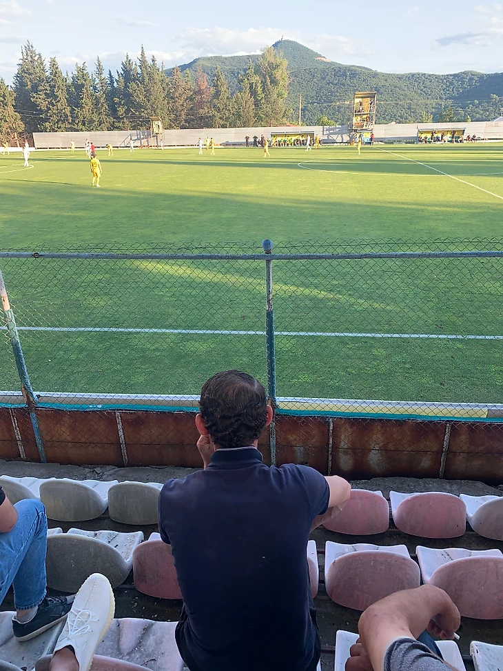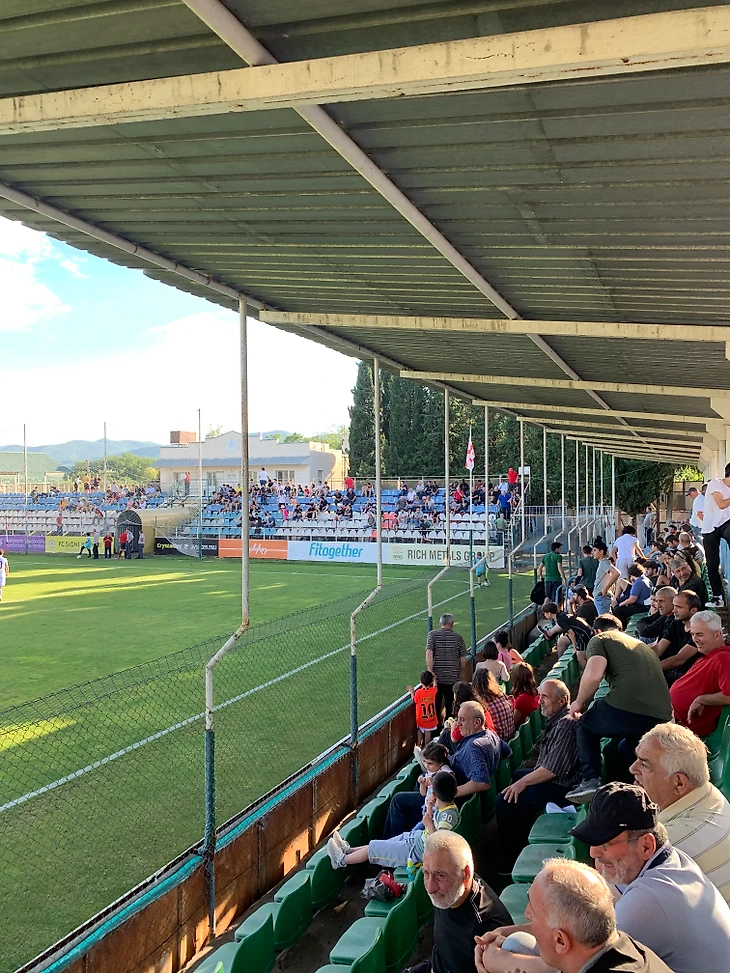 Эти люди не отвлекаются на телефоны. Они смотрят на поле. А на поле, честно говоря, полнейшее дерьмо. Игра настолько уныла, насколько уныл может быть футбол. Вообще не ясно, каким образом эти команды держатся в высшей лиге и ещё занимают не последние места. Техническое оснащение футболистов близко к нулю, за 50 минут матча был нанесен 1 удар в створ, а технари-запасные, показывавшие чудеса фристайла в перерыве, выходя на замену растворяются в общем унынии. Но это все не важно. Важны люди. Эти деды, эти «между 40 и 50», эти «за 30», эта молодежь. Они живут игрой. У каждого из них своя история, которую с удовольствием хотелось бы послушать. Они приходят на этот обшарпанный стадион. Они не ждут зрелища. В 2006 году «Сиони» стал чемпионом Грузии, но те времена уже позади. Они приходят, потому что так надо. И вот они сидят, изредка матерятся, лупят семки, переживают. И вот он, футбол. Он в них. Без разницы что на поле. Главное что в глазах, в головах и в сердцах этих людей. Они и есть футбол.