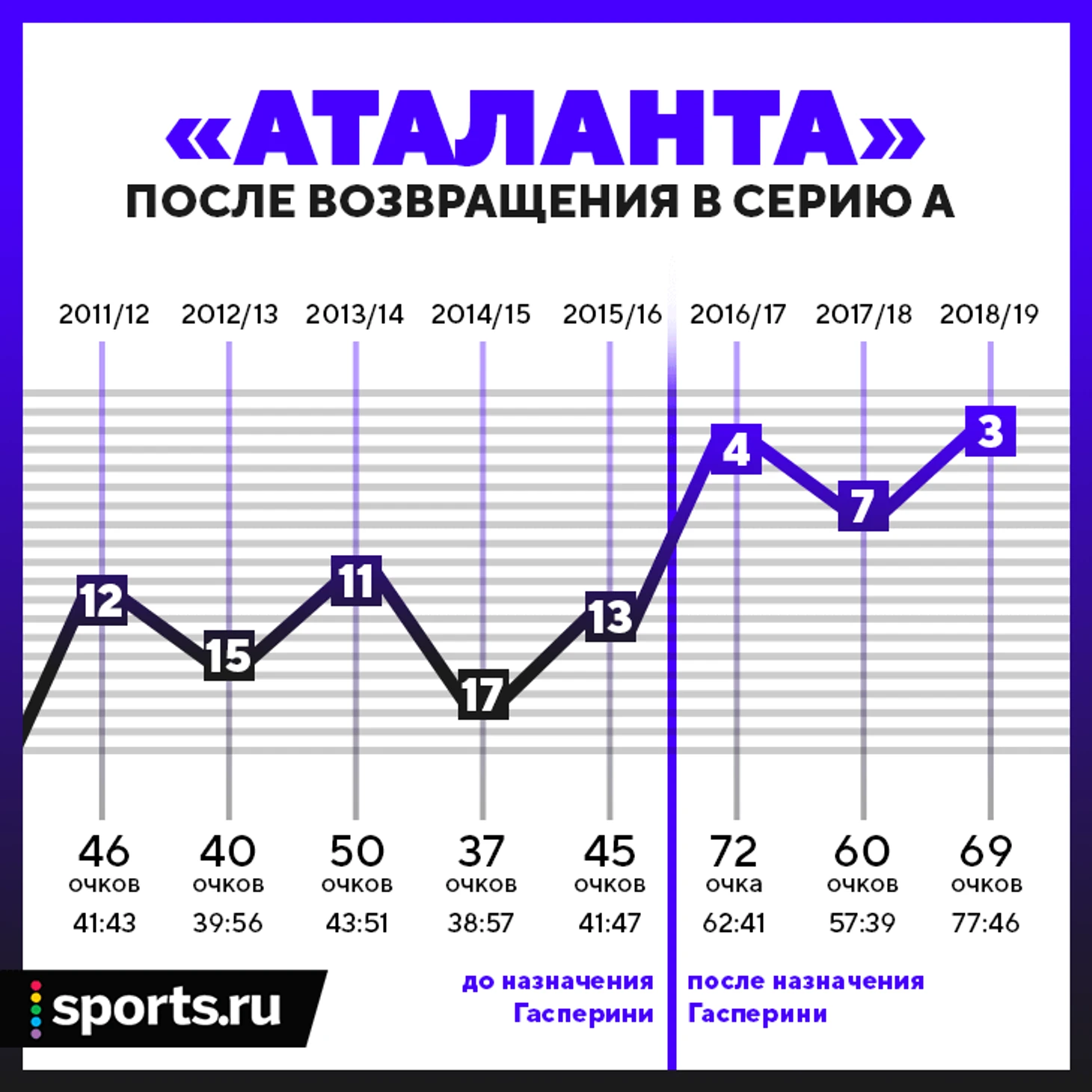 В первых пяти турах чемпионата-2016/17 «Аталанта» проиграла четыре раза и пропустила 11 голов. Джан Пьеро Гасперини был морально готов к тому, что его работа в клубе завершится на шестом матче (против «Кротоне»). «На выездную игру приехало все руководство. Словно семья на похороны, – вспоминал он. – Я чувствовал себя ходячим мертвецом. Все было готово к погребению, даже цветы».